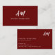 Simple Maroon Red Two Monogram Casual Script Business Card