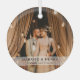 Create an ornament for newlyweds 1st christmas as husband and wife with this simple modern template. Design features a photo of your choice, a white overlay banner with the text 'MARRIED AND MERRY' and the couple's names.