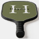 Simple Masculine Green Monogram Name + Initial Pickleball Paddle
