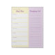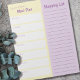 This personalised Notepad is simple but pretty in pastel yellow and lavender. Organise your weekly meal planning and shopping lists in one place; tear off the sheet and take it to the store - easy and hassle free planning. That said, the template is set up for you to edit the headings, so please feel free to change Meal Plan and Shopping List to Daily Chores and To Do List, for example. The notepad is printed on every page and has a colour palette of pastel yellow and lavender with white boxes and dark lavender typography.
