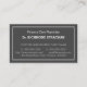 This humble and basic business card design features a first and last name, a healthcare facility name, a position title, and contact info that can be personalised. It also has a double-line white border. Business cards such as these might be used by a professional such as a general practitioner or a physician.