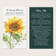 Simple Red Rose Sympathy Funeral Prayer Cards. This modern yet elegant memorial prayer card features a watercolor sunflower on a white design . Front "In Loving Memory" Personalise this memorial funeral prayer card with your loved ones name & dates, and sentiment. Back ~ 'Miss Me' Poem, which can be personalised, please reach out if you would like a design with a specific poem other than. This memorial prayer card will be a treasured keepsake, for funeral services, and celebration of life. COPYRIGHT © 2020 Judy Burrows, Black Dog Art - All Rights Reserved. Simple Memorial Sunflower Funeral Prayer Card