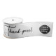 This elegant ribbon features a timeless black and white design, customisable with your logo, and completed with simple chic black typography for the date and business name, along with stylish calligraphy for the "Thank You" message, all set against a clean white background. The sophisticated calligraphy adds a refined touch, making it ideal for gift wrapping on various festive occasions. Swap the photo with your logo for an excellent promotional tool for your business. The ribbon drapes beautifully, elevating any setting with its classic charm and festive appeal. Perfect for both personal and business use, this versatile ribbon enhances any occasion.