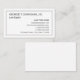 This simple and minimal business card design features a professional’s name, a business name, a job title, and contact info that can be customised. It also has a double-line border with a dashed line in between. Business cards like these might be used by a professional such as a barrister, a lawyer, or a business law expert.