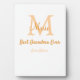 simple minimal best Grandma ever orange monogram Plaque