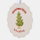 Simple and minimal personalised keepsake Christmas paper ornament with photo on the back. Created from a hand drawn watercolor Christmas tree in a kitschy style. Original art by Leslie Larson.