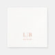 Simple and elegant with minimalist appeal, this paper napkin designed for weddings, showers, engagement parties, or anniversaries has a classic clean look the bride and groom's monogram initials and wedding date in citrus orange type face on white. This simple timeless design works beautifully for spring and summer weddings, coastal weddings, and weddings with a citrus grove theme.