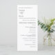 Simple and elegant with minimalist appeal, this wedding program presents your wedding order of ceremony and wedding party names in classic style. The white background with black text has a clean look that is easy for your guests to read. An elegant understated type face pairing presents your text clearly and simply to carry out the theme. Personalise this template on the front and back of the program with your details. If you need to make additional edits, select "Edit using Design Tool" to open up the full editor where you can see each layer of text and make more detailed edits.
