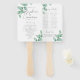 Simple, modern, minimal with trendy script signature font wedding program printed on a fan with a watercolor Eucalyptus greenery border, order of the ceremony, bridal party names, and thank you message on the back. The white background colour can be changed to match your wedding colour scheme.