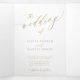 Simple minimal gold script RSVP details QR wedding Tri-Fold Invitation