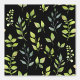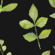 Beautiful, simple leaf pattern with a variety of green and blue leaves on black background. Elegant, minimal and stylish.