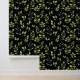 Simple Minimal Green Blue Leaf Pattern on Black Wallpaper