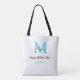 simple minimal mother's day blue monogram pink nam tote bag