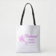 Simple minimal pink bridesmaid add name year text tote bag