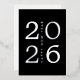 With bold simplicity and modern minimal style, this new year card design features bold typography on the front in a mix of white and real gold foil spelling out the year 2025 and HAPPY NEW YEAR greeting. The black background contrasts beautifully with the text and shows off the shimmer of the gold foil. The back of the card has a text template to personalise as you wish, or leave the text as written. This card is a wonderful choice for business or personal use.