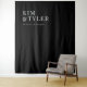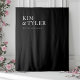 Black and white trendy modern bold typography bride and groom names personalised wedding welcome sign photo booth backdrop.