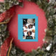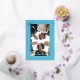 Send holiday greetings with this minimalist turquoise gift wrap inspired, photo greeting card. The string bow and "Merry Christmas" or custom holiday greeting text is in real foil. The option to change the foil from silver to rose gold or gold is available. The back of the card is a solid turquoise, blank background.