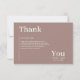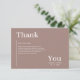 Elevate your gratitude with our Simple Minimalist Brown Elegant Thank You Card. Designed with a clean and timeless aesthetic, this card features a sophisticated brown palette that exudes warmth and elegance. Perfect for any occasion, whether it's to express appreciation for a gift, a kind gesture, or a special moment, this card is a subtle yet impactful way to convey your heartfelt thanks. The minimalist design ensures it complements any style, making it a versatile addition to your stationery collection. Ideal for those who appreciate understated beauty and refined simplicity.
