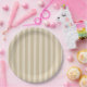 This design features a simple minimalist monogram initial, simple minimalist simple brown and tan striped, whimsical cute boutique, party paper plate simple, stripes stripe whimsy party supplies, graduation birthday bridal shower, wedding anniversary celebration event, coordinating chocolate chip cookie, artwork by laura lacina