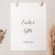 This simple minimalist cards and gifts sign is perfect for a modern wedding or bridal shower. The simple and elegant design features classic and fancy script typography in black and white.