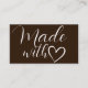 Simple Minimalist Chocolate Made With Love Heart Business Card