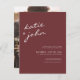 In the height of the pandemic where any gatherings are not allowed, just invite your friends and loved ones to a virtual wedding celebration with this modern and chic invitation postcard in the trendiest wedding colour theme of the year, cinnamon rose. It features a casual calligraphic lettering of the bride and groom’s name together with their picture at the back.