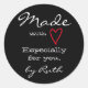 Simple Minimalist Made with Love Red Heart Black Classic Round Sticker