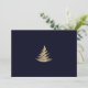 Simple Minimalist Navy Blue Gold Christmas Tree Holiday Card