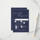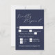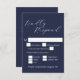 Simple minimalist elegant script wedding RSVP card on navy blue for a wedding invitation, modern rsvp reply enclosure card with meal choice.