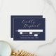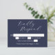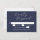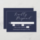 Simple minimalist elegant script in navy blue wedding RSVP card.