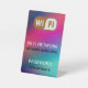 Enhance your business or event with our customisable Rainbow Colour WiFi Network Password Pedestal Sign. This 4" x 6" sign, featuring a 2" pedestal base, is perfect for counters, desks, and display tables. Made from durable 1/16" white plastic polystyrene, it boasts a high-quality, full-colour, digital print that ensures your personalised message stands out. Available in four sizes, this customisable sign is an elegant and practical addition to any space.