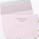 This envelope design features a return address printed on the back flap with a simple pink, minimalist, minimal, elegant style, see matching baby shower invitations, a 5x7, baby soft pink, basic envelope