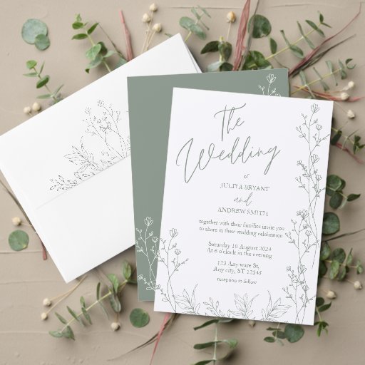 floralsimpleminimalistmoderntrendysaga greenwedding invitation belly bandgreen belly bandsolid colourgreen and white