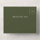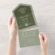 Introducing our classic all-in-one invitation featuring a sage green on olive green colour palette with cream text. This invitation is perfect for couples seeking a sleek, minimalist and classic aesthetic for their special day. The highlight of this invitation is the convenient QR code, allowing guests to RSVP effortlessly using their smartphones. For traditionalists, we've included a traditional paper RSVP option as well. With the all-in-one design, guests can easily tear away the RSVP section and send it back. Additionally, we've provided email information for RSVPs, ensuring a seamless and convenient RSVP process.