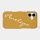 This stylish custom phone case features a simple minimalist design of your name in a beautiful handwritten script lettering in white on an earthy mustard yellow background. Great gift idea!