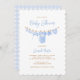 Celebrate your little guy on the way with this adorable boy baby shower invitation featuring a simple minimalist design. The invite showcases soft blue watercolor baby clothes, a sky blue gingham background, and a cute scalloped border—perfect for a sweet and modern baby shower theme. Choose from professionally printed invitations or a convenient digital download to print at home or share online with ease.