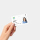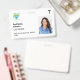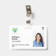 Simple and minimalist custom hospital employee badge in white with the corporate logo, photo, name, and staff role or title. Edit the background colour by clicking on the option to customise the design. Duble-sided, both sides will have the same design unless you want to change it. Available with a lanyard, metal clip or retractable cord. Please get in touch with us if you have any questions or need a personalised design.