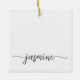 Girly Minimalist Simple Clean White Monogram Name Script Custom Personalised Ceramic Ornament. These design featuring your first name in a pretty hand lettered style swash tail font signature typography (or calligraphy) black script on white colour background. These are easy to customise it. Great stylish feminine housewarming gift, also for birthday, mother’s day, sweet 16 birthday party, wedding, bridal shower, baby shower, for graduation party and It’s for the girl who loves unique stylish things.