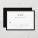Black and white simple minimalist with border wedding RSVP response card. Block and lower case traditional text within a thin black border. Back is black. To adjust the layout, click Personalise It, Edit Text, then click and drag text sections to desired locations. Select Cntrl to move multiple sections at once.
