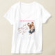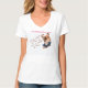 The image displays a person wearing a white V-neck T-shirt adorned with a unique printed design. The design features a photograph of an individual sitting with one knee up and the other leg bent, while the face in the photograph is intentionally blurred out. Above the photograph, bold red text proclaims, "ONE PERSON, INFINITE LOVE." Below the photograph, elegant cursive text reads, "Doing what you love is never a waste of time." This casual and stylish piece combines modern fashion with an inspirational message, perfect for those who appreciate both comfort and meaningful expressions.