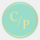 Simple Mint and Gold with Monogram Classic Round Sticker