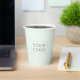 This minimal paper cup features a simple logo and text template on a mint green background. Add your logo and customise the text with your information. You can use this personalised cup at your business place, shops, company event or, etc.