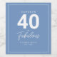 Simple cornflower blue and white "40 & Fabulous Birthday Blend" personalised wine label with classy and modern typography. Customise it easily with age, name, drink name and birth year. Perfect for birthday gift or party favour.