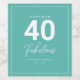 Simple teal blue and white "40 & Fabulous Birthday Blend" personalised wine label with classy and modern typography. Customise it easily with age, name, drink name and birth year. Perfect for birthday gift or party favour.