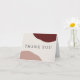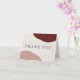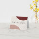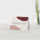 The colour scheme in this Thank You Card is perfect for a fall wedding with its colour combination of burgundy wine red and earthy terra-cotta in simple abstract shapes on opposite sides of the design. Elegant type face spells out the words "Thank You" on the front of the card. A sample text template on the inside of the card may be personalised with your own words, or you can also delete the inside sample text if you wish to hand-write your thank you notes.