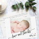 Trendy minimalist typography script baby shower love and thanks thank you card template personalised with newborn baby photo and your text.