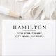 These chic return address labels feature a modern design with a black and white colour palette. The last name is written in large capital letters across the top, with a line below to separate it from the address.