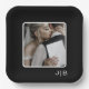 Simple modern black, white monogram photo Paper Plate