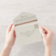 Elegant, modern boho, simple, contemporary neutral earth tones and terracotta wedding all-in-one invitation, with giant monogram initials and two pictures of the couple.