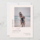 These 5" x 7" save the date cards feature a minimalist design in vibrant orange and cream letters on a magenta background with placeholders on the back for the engaged couple names, wedding date, and venue information and your favourite photo!